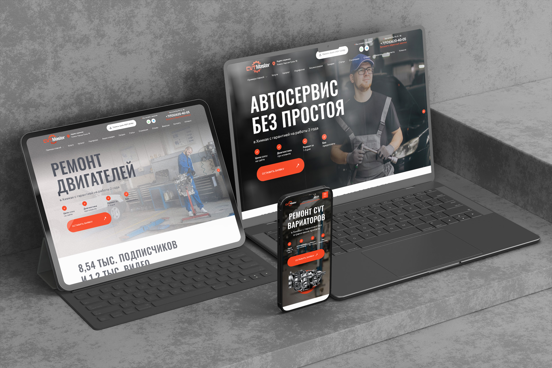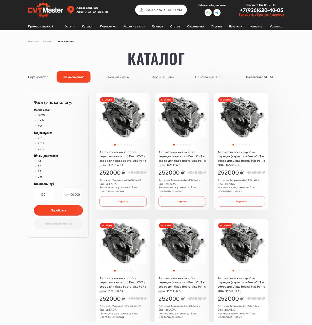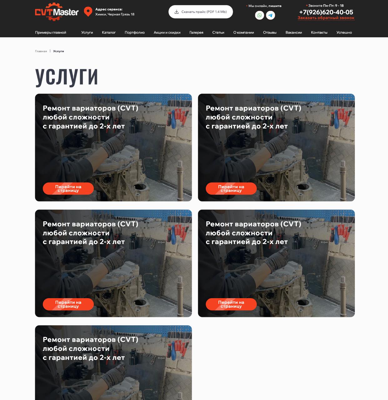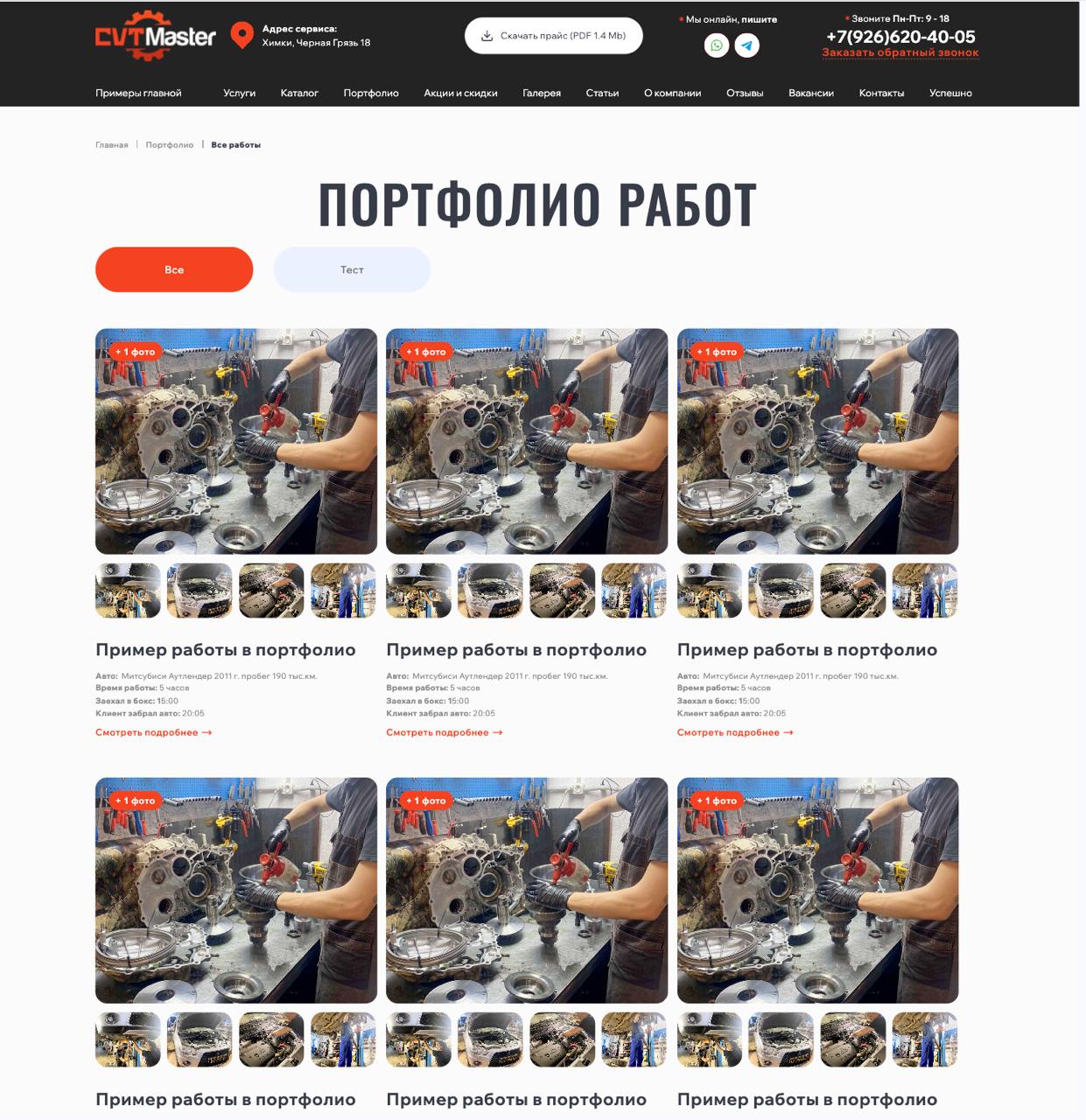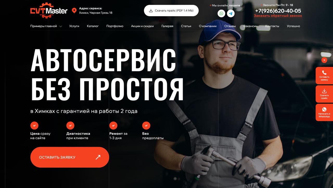 • Дизайн: Создали строгий, но современный дизайн в корпоративных цветах клиента. Сделали акцент на фотографиях реального сервиса, мастеров и оборудования для повышения доверия.